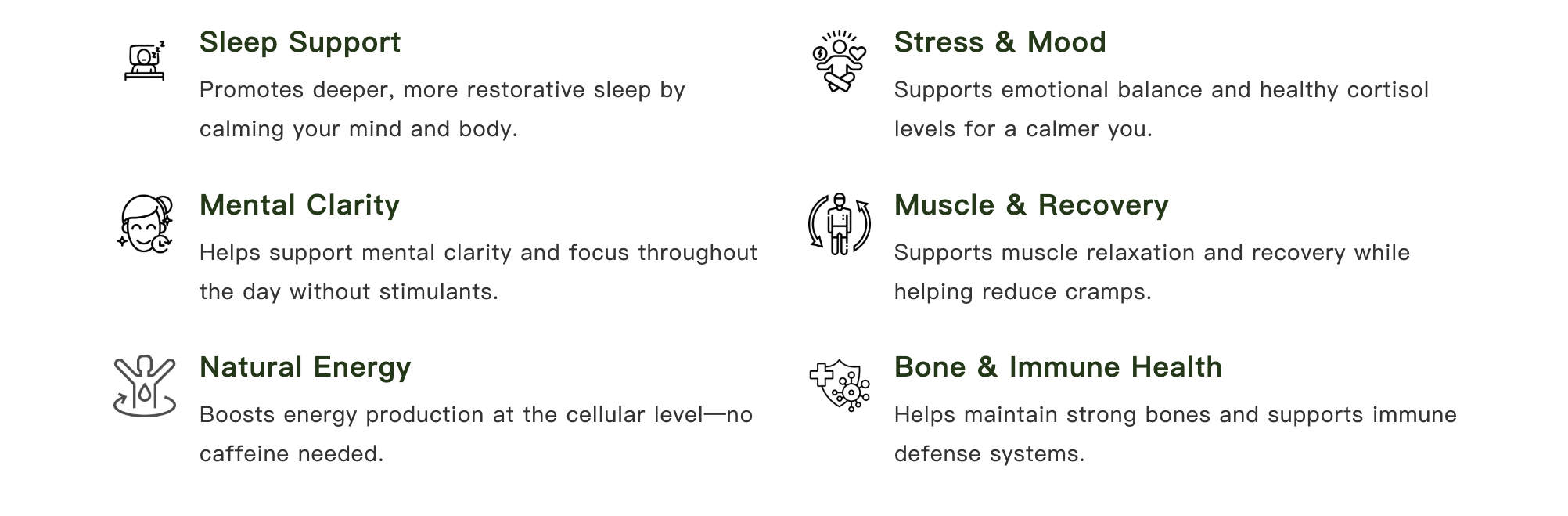 😴 Deeper Sleep – Supports natural evening wind-down and muscle relaxation to promote restful, uninterrupted sleep.